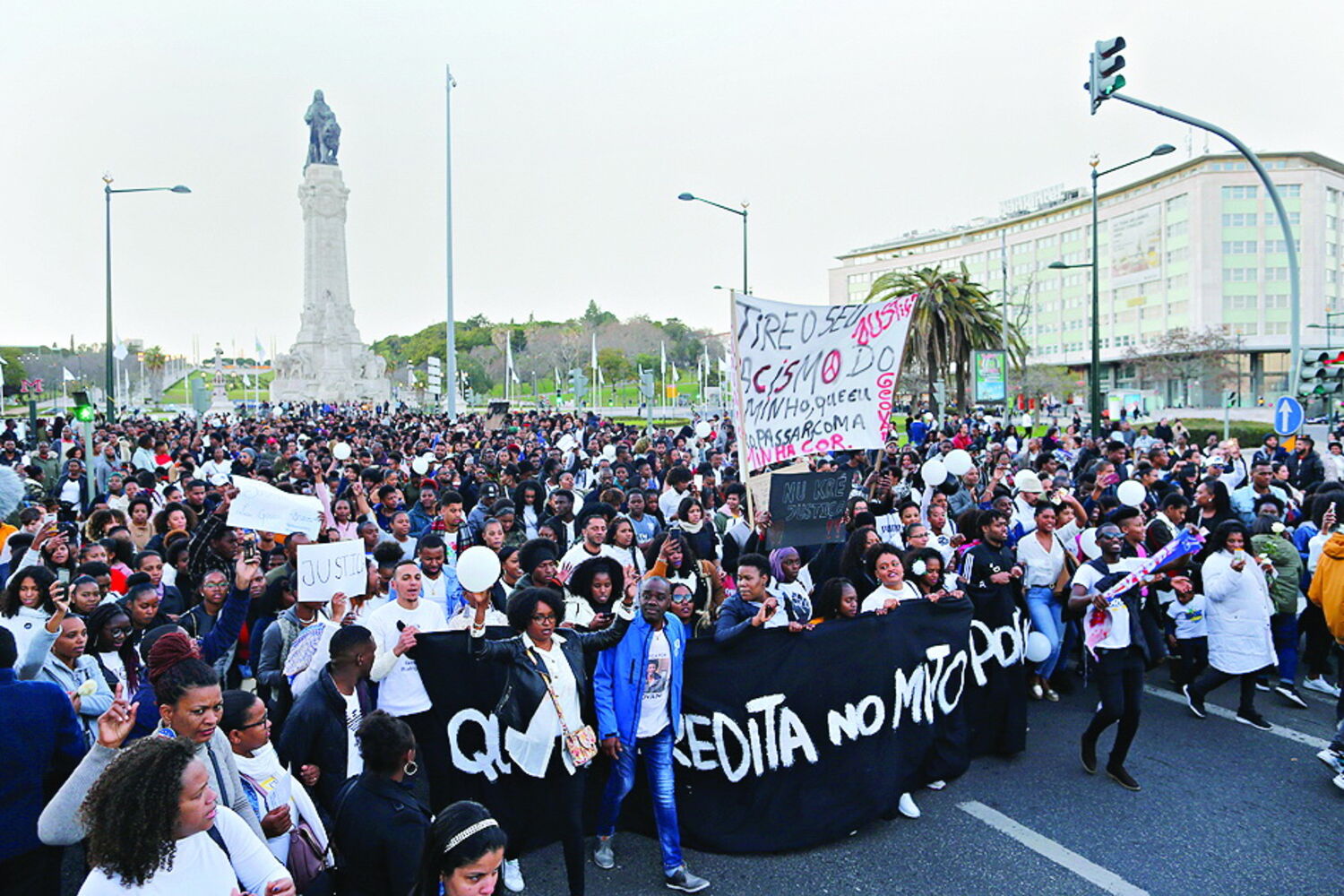 "Quem acredita no mito do Portugal não racista?". A questão acusatória, num cartaz negro a letras brancas, encabeçava este sábado os mais de três mil manifestantes que, por momentos, saíram de controlo, invadiram e cortaram a avenida da Liberdade, em Lisboa, para existir "justiça" para Luís Giovani, o estudante cabo-verdiano de 21 anos que foi agredido a 21 de dezembro em Bragança e morreu 10 dias depois num hospital.