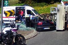 Viatura tombou lateralmente.