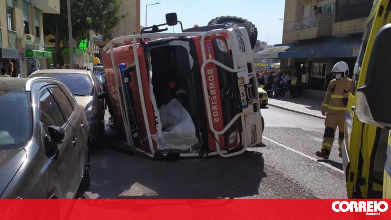 Cinco bombeiros feridos em despiste no Barreiro. Estavam a caminho de um incêndio