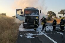 O alerta foi dado às 9h38. O condutor, quando se apercebeu das chamas no reboque, conseguiu desatrelar o trator, pelo que só há danos materiais a registar.