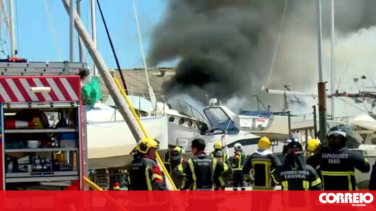 Vários barcos destruídos por incêndio que deflagrou num estaleiro em Olhão. Veja as imagens