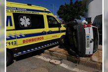 Uma ambulância capotou na manhã desta segunda-feira após uma colisão com dois carros na En11-1, na Baixa da Banheira, Moita.