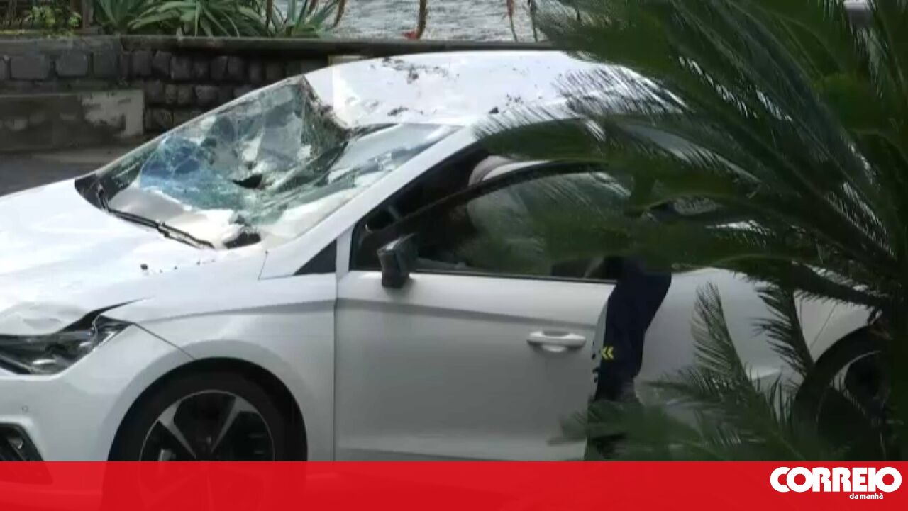 Dois carros foram atingidos por uma queda de rochas de uma falésia, na marginal de São Vicente, na Madeira, esta quarta-feira, devido ao mau tempo.