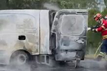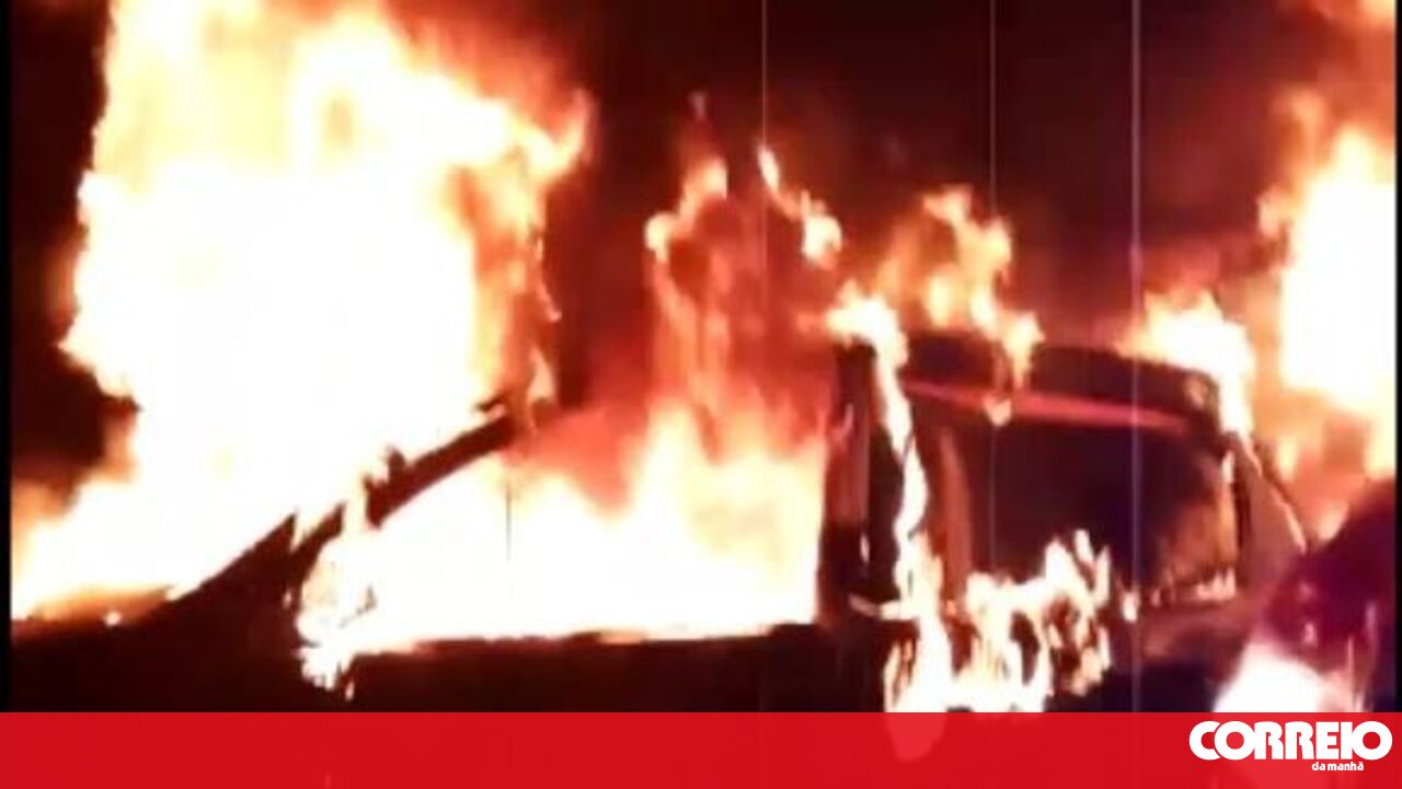 Carro e ambulância ardem no acesso ao IC2 em Coimbra