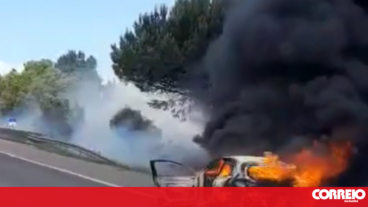 Carro pega fogo na A12 perto do Pinhal Novo e chamas propagam-se a zona de mato