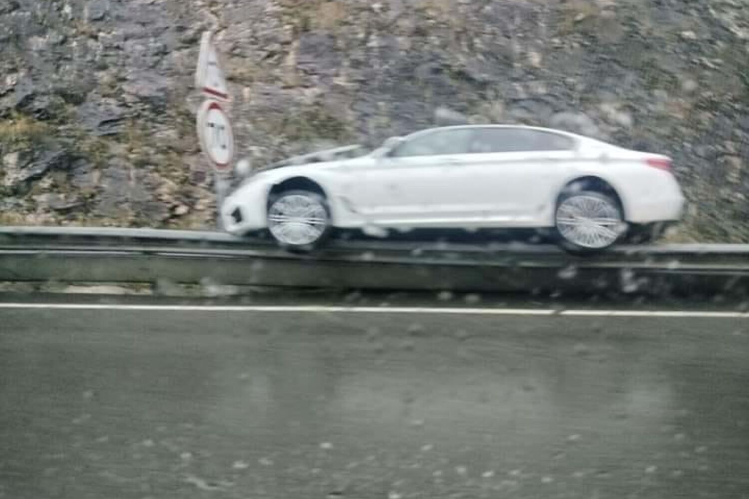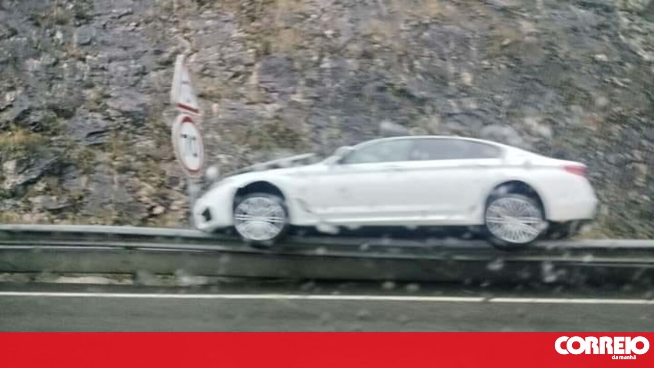Em circunstâncias que ainda não estão totalmente apuradas, a viatura galgou a barreira lateral e ficou imobilizada sobre a estrutura metálica.