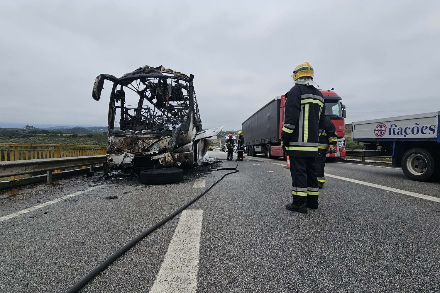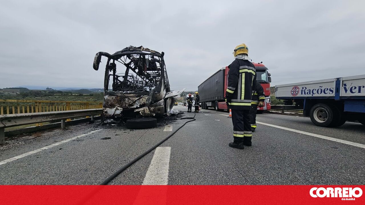 Um autocarro ardeu completamente no IP3, em Coimbra, esta quinta-feira. O trânsito esteve cortado no nó de Souselas nos dois sentidos, mas já foi restabeleciddo.