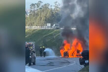 Ambulância que transportava utente para o IPO do Porto destruída pelas chamas na A4 em Mirandela