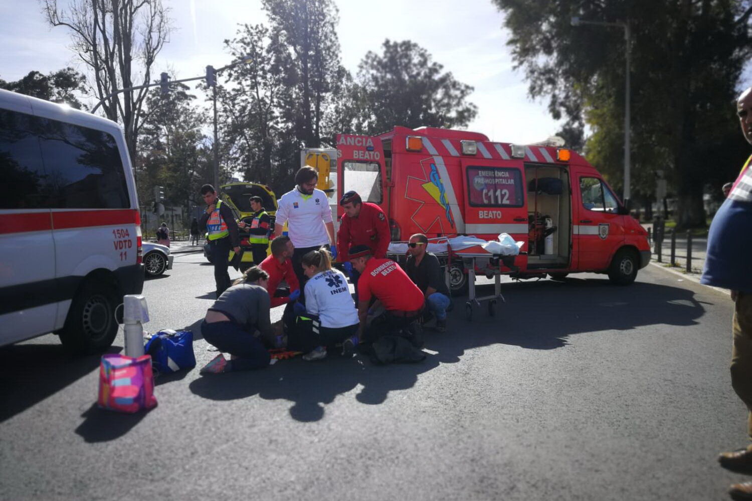 Estiveram no local equipas da VMER do INEM e uma moto deste serviço de emergência, a que se juntou uma ambulância dos Bombeiros Voluntários de Campo de Ourique