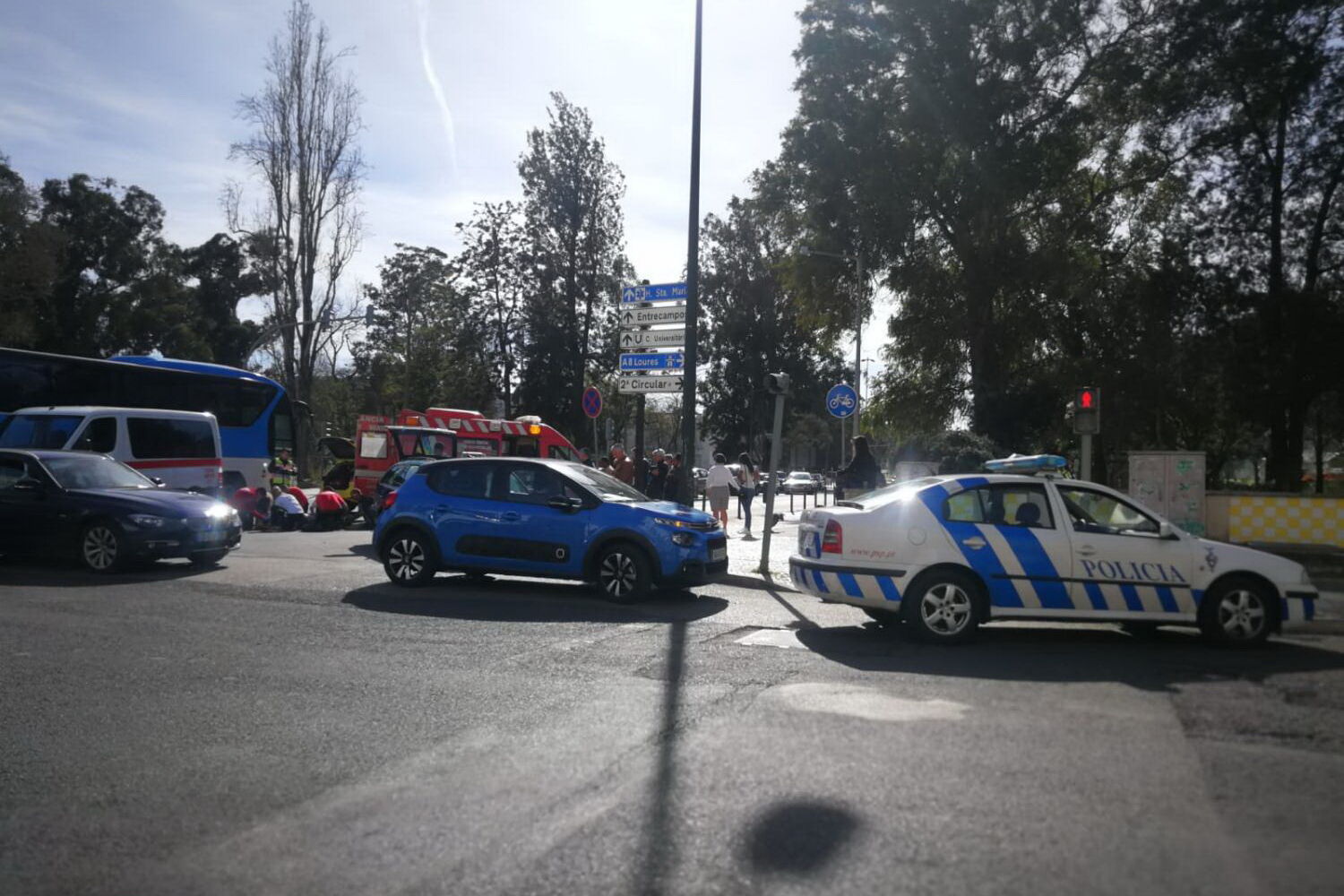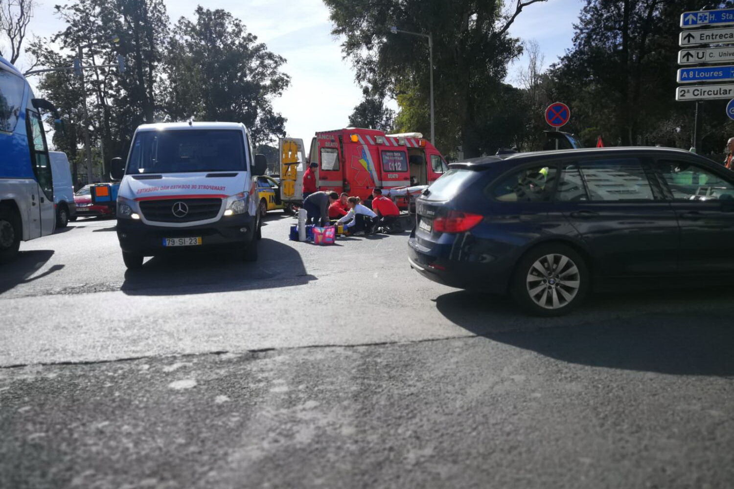 O condutor do motociclo foi assistido no local pelo INEM e levado para o Hospital de Santa Maria, onde entrou com ferimentos graves.