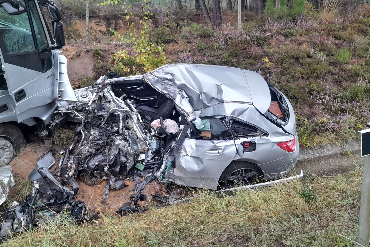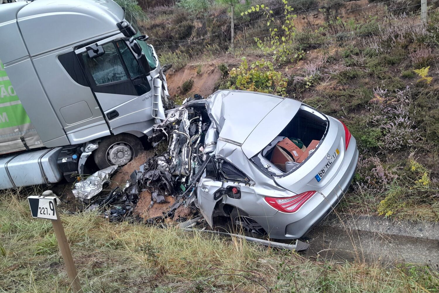 Na sequência da colisão a via está neste momento condicionada no sentido sul-norte.