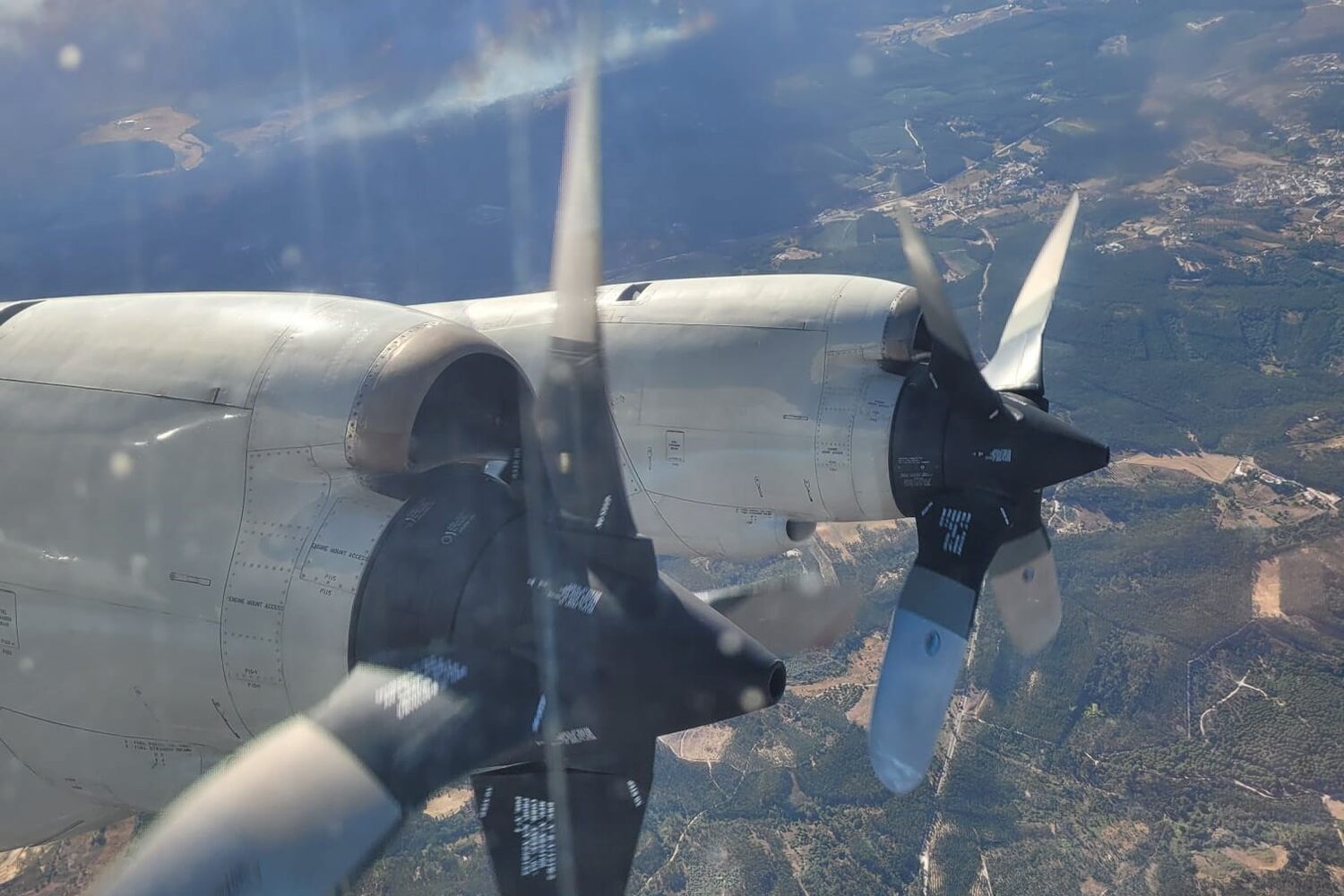 A aeronave P-3C CUP+, da Força Aérea Portuguesa, está a vigiar zonas rurais, especialmente locais sinalizados como de risco de incêndio muito elevado.
