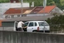 O MP refere que o arguido dirigiu o carro até à Esquadra de Trânsito e, no espaço adjacente que circunda o edifício descoberto e em terra batida, retirou da viatura o imigrante e fê-lo "ficar assente com os joelhos no chão".