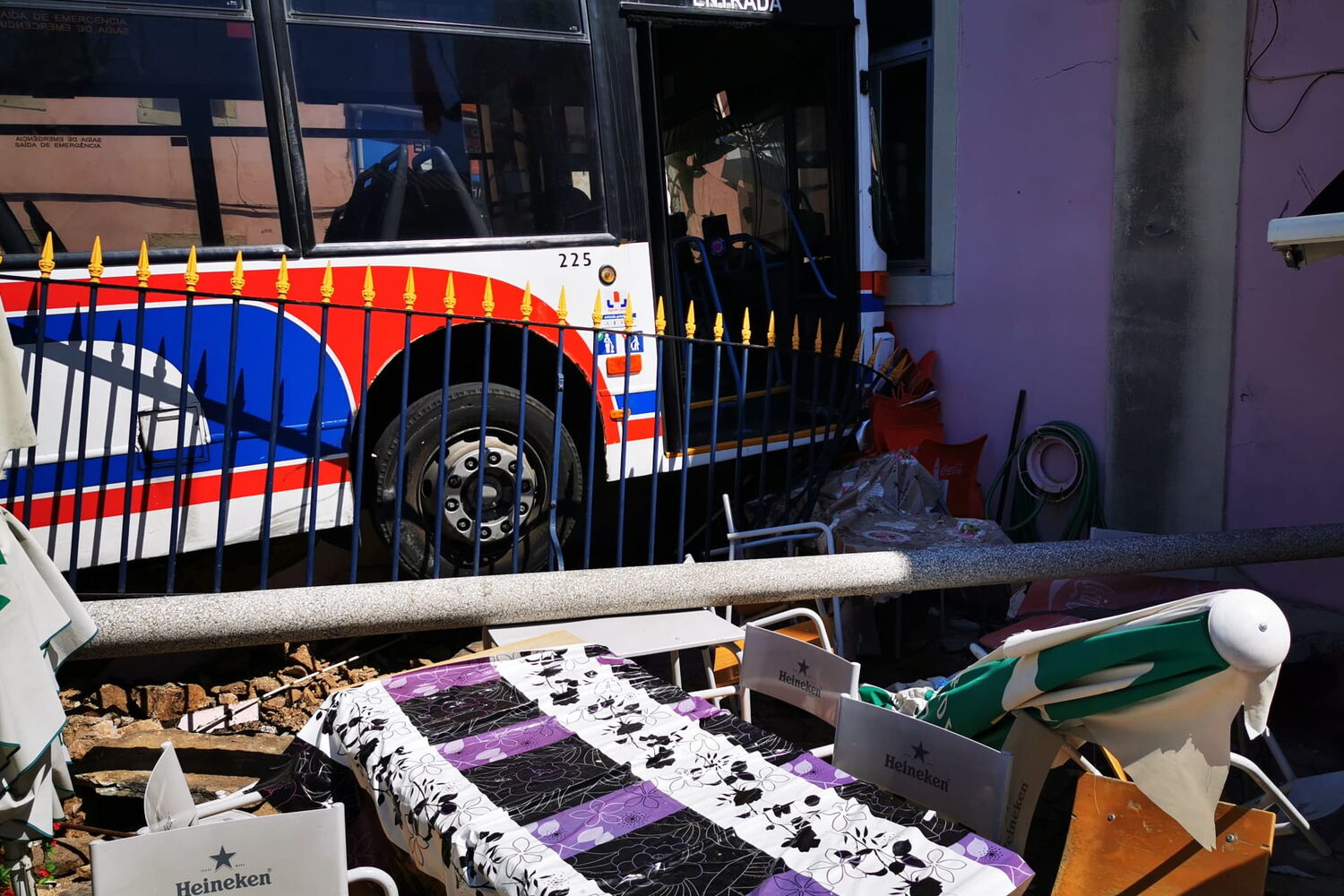 Um autocarro despistou-se esta sexta-feira de manhã e embateu contra o edifício do Real Sport Club, em Queluz.Fonte oficial da PSP confirmou o acidente ao CM.No autocarro seguiam 13 pessoas - o motorista e doze passageiros. O CM sabe que duas pessoas ficaram feridas e tiverem de ser transportadas para o Hospital Amadora-Sintra.As vítimas, que se tratam de dois passageiros, ficaram com ferimentos ligeiros.O acidente provocou ainda a queda de um poste de eletricidade e danificou alguns espaços do interior do edifício.A PSP e os Bombeiros foram mobilizados para o local. Quando chegaram ao local tiveram de proceder à retirada dos passageiros de dentro do autocarro. Devido ao embate, as portas ficaram trancadas e tiveram de ser abertas pelas autoridades. As causas do despiste deste autocarro são ainda desconhecidas.