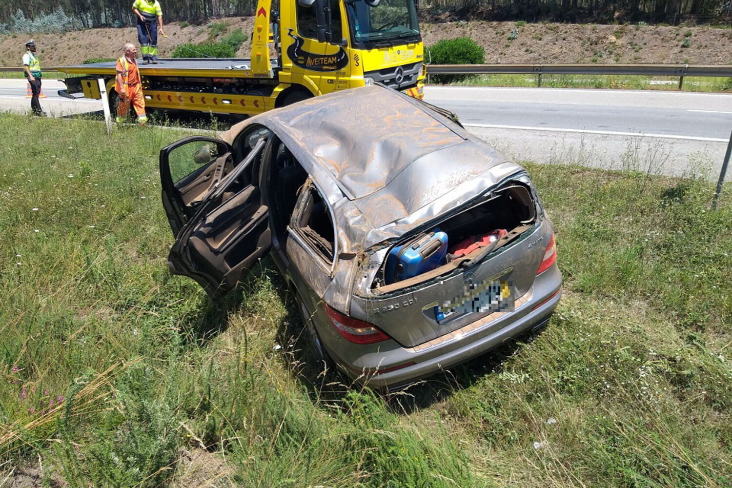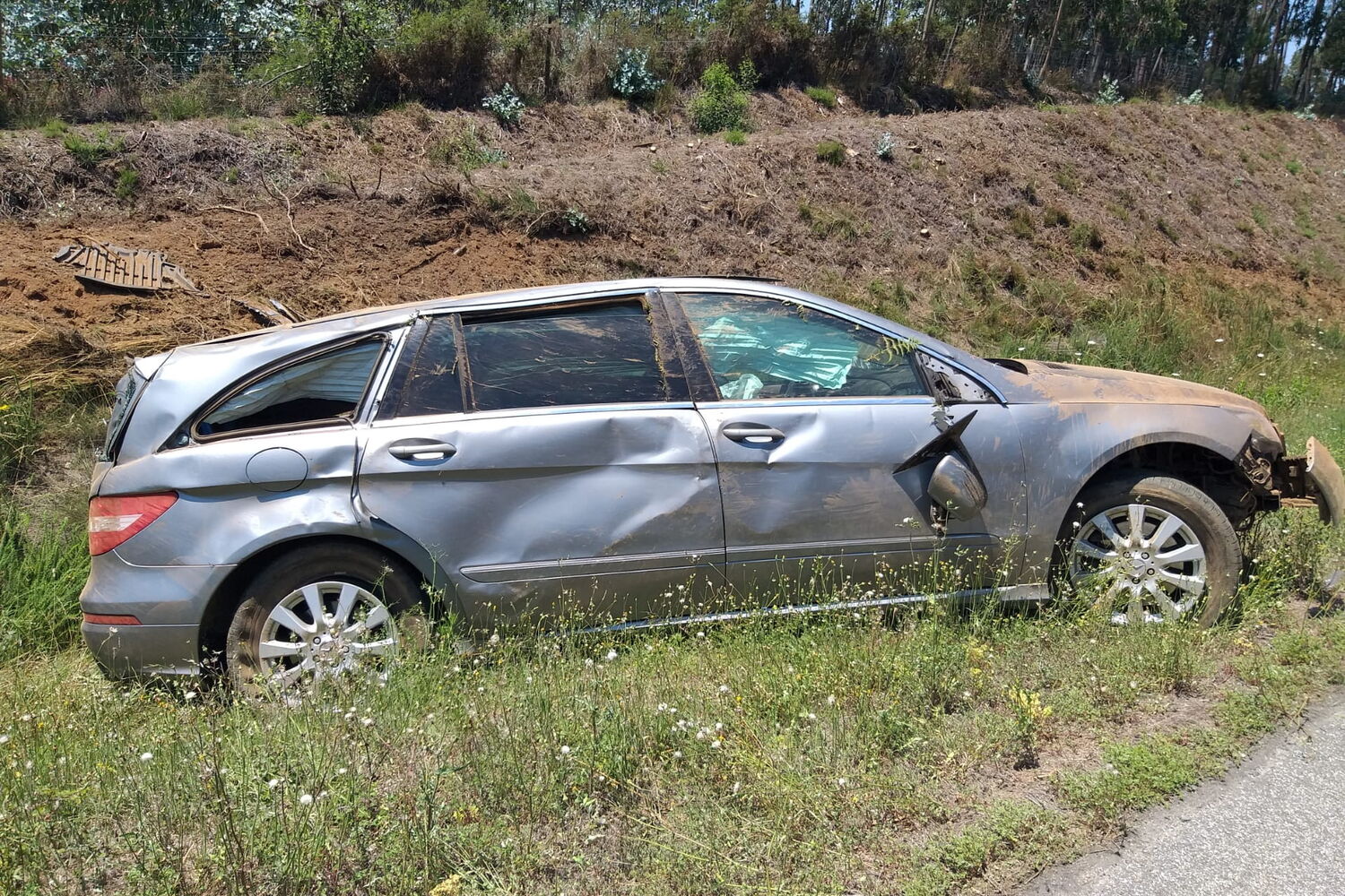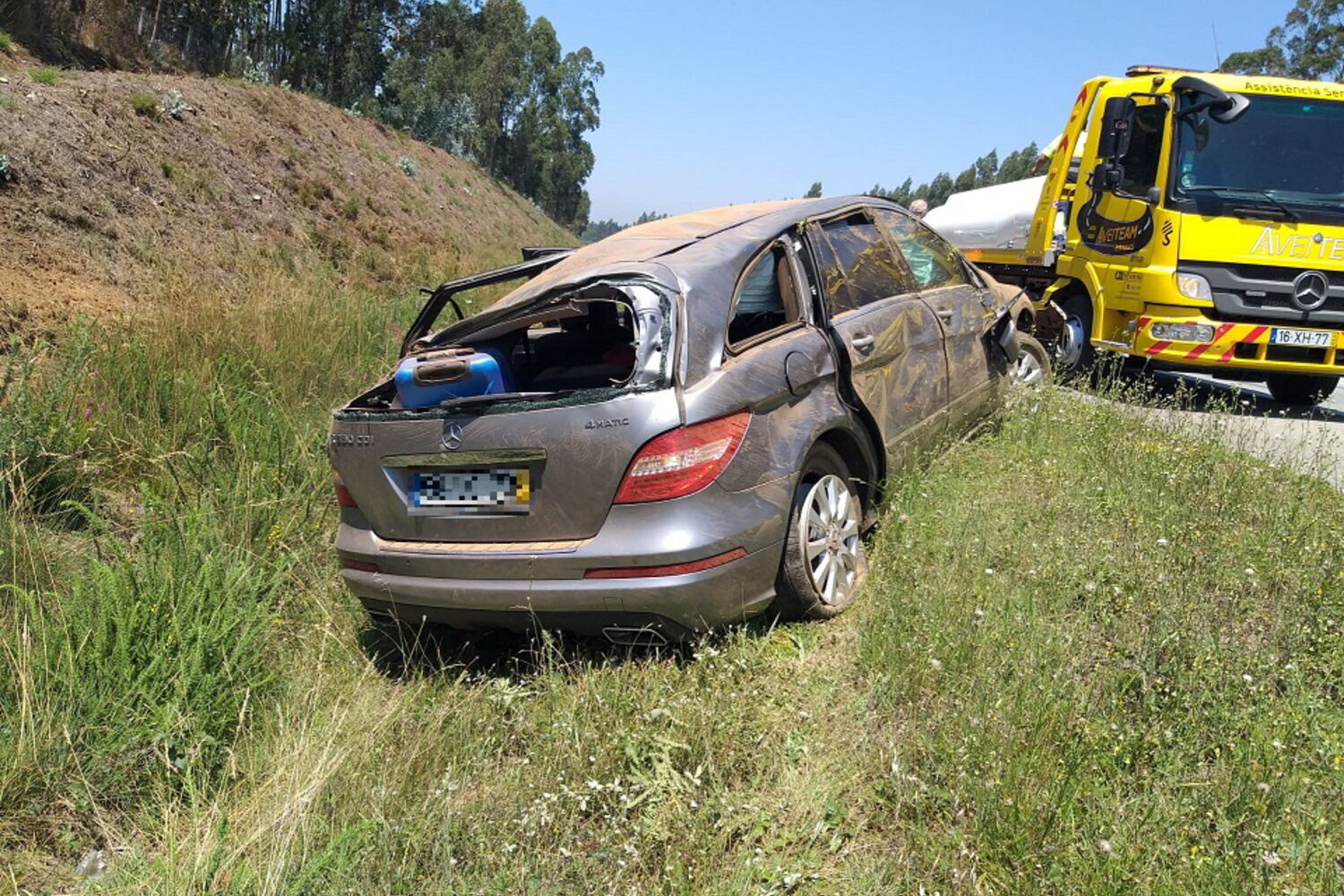 A viatura encontra-se a ser removida do local. As causas deste despiste são ainda desconhecidas.