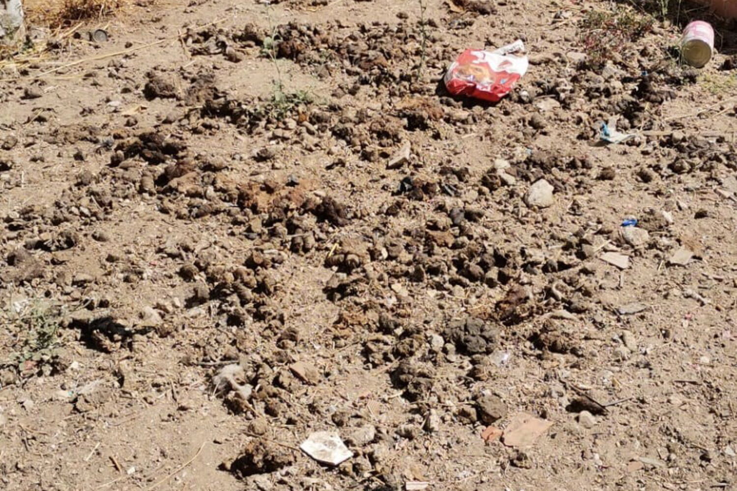 Animais mantidos em local cheio de fezes e sem acesso a água.