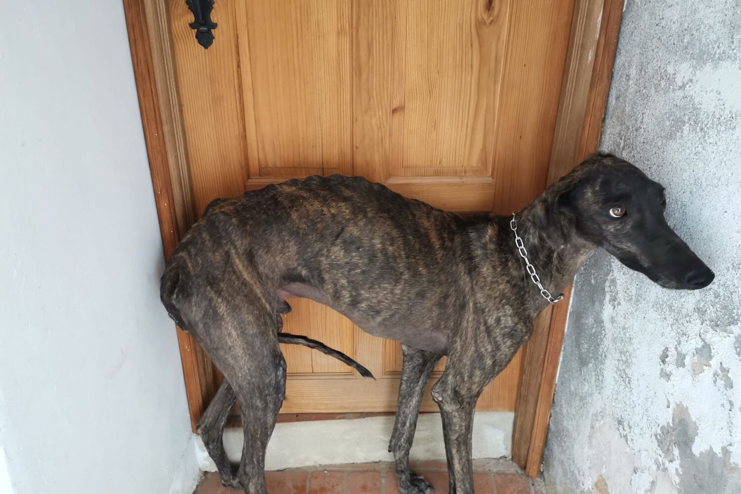 Os animais são dois cães galgos, que aparecem visivelmente magros, e eram mantidos num local cheio de fezes e sem acesso a água. Uma das veterinárias no local disse que os animais não estavam maltratados.