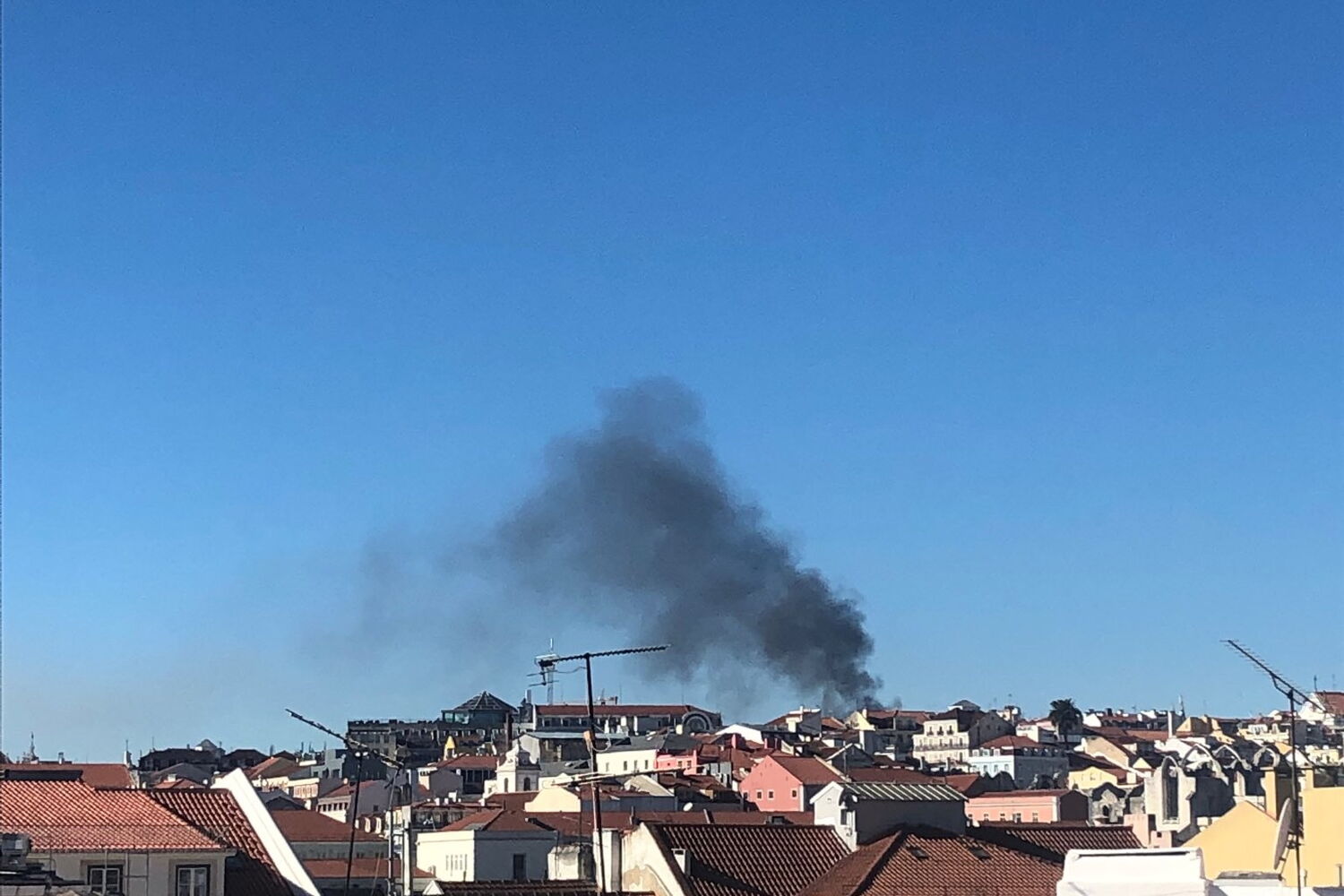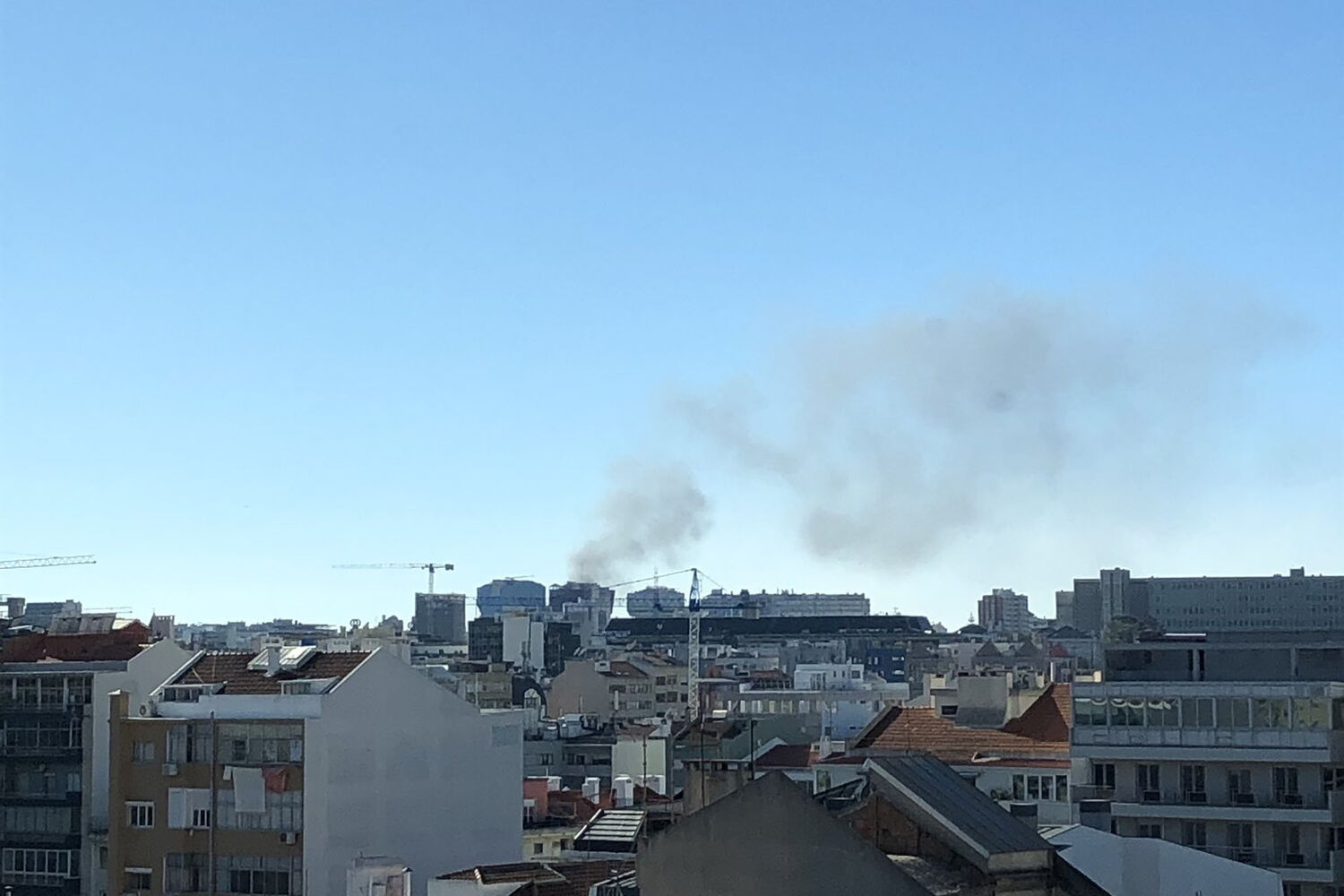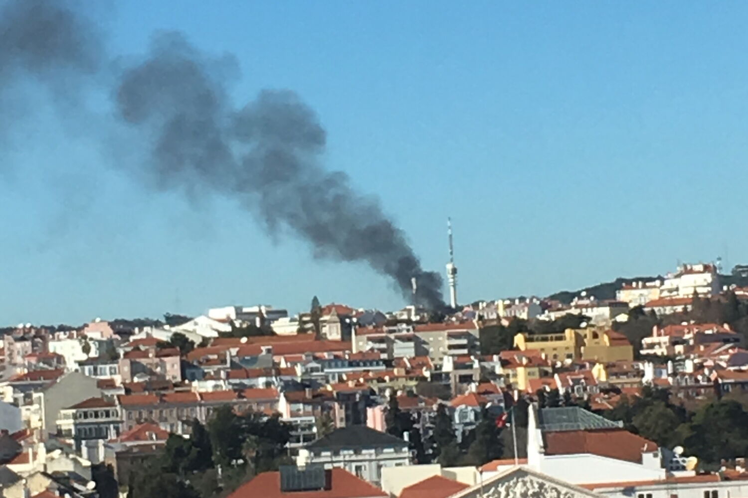 Incêndio destrói cobertura de prédio em Campo de Ourique em Lisboa
