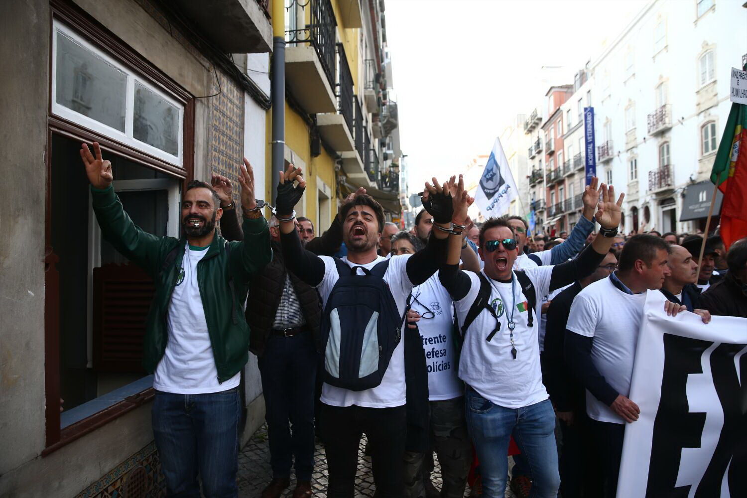 Elementos da PSP e da GNR manifestam-se esta quinta-feira em Lisboa para pressionarem o novo Governo a cumprir as reivindicações da classe e as promessas do anterior executivo.