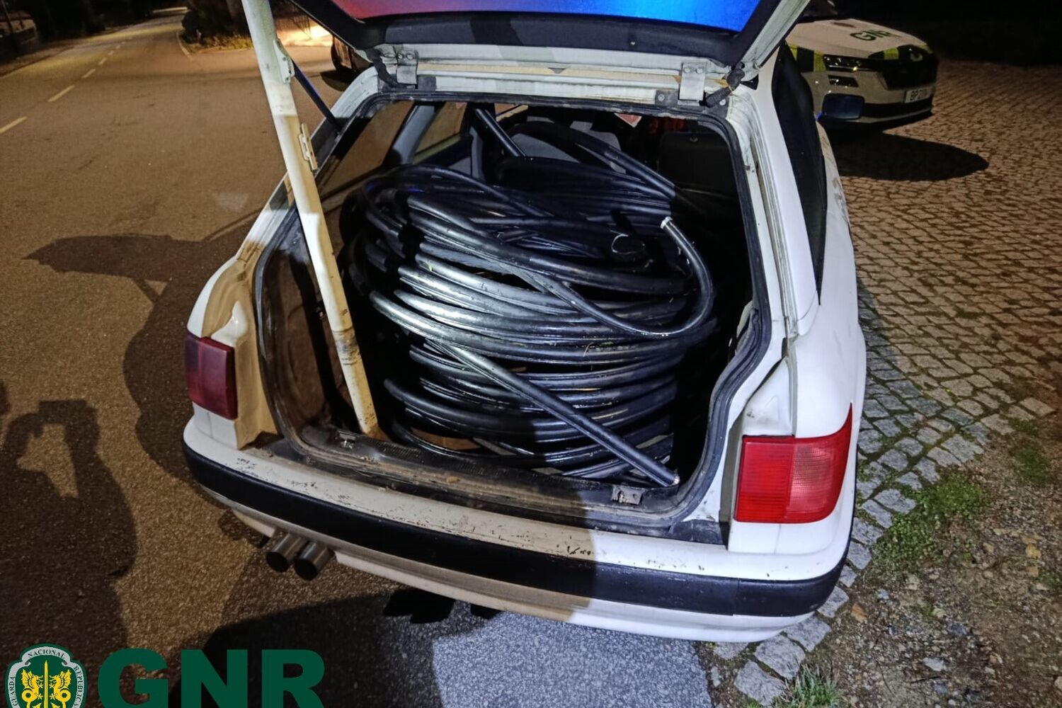 Conjuntamente com o cabo, a GNR apreendeu o automóvel, um alicate, uma bateria e um disco de corte. Diligências posteriores permitiram apurar que o cabo de cobre tinha sido recentemente furtado dos postes das linhas telefónicas. O homem responde agora por um crime de furto de metais não preciosos.