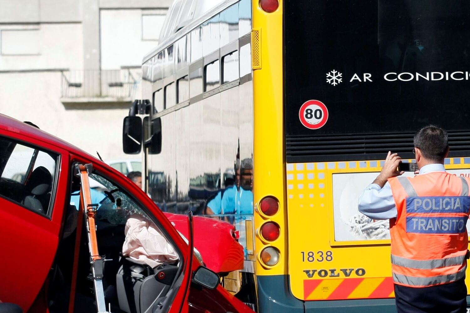 "Quando vi o meu genro cheio de sangue fiquei logo aflito porque os meus netos estavam no carro." Alfredo Henriques, de 76 anos, estava à janela de casa, na rua Cidade da Beira, nos Olivais, Lisboa, quando viu o carro onde seguiam a filha, o genro e os netos ser abalroado por um autocarro da Carris. Toda a família foi transportada pelo INEM para o Hospital de Santa Maria. O autocarro abalroou dois carros com ocupantes e mais cinco que estavam estacionados na estreita rua.