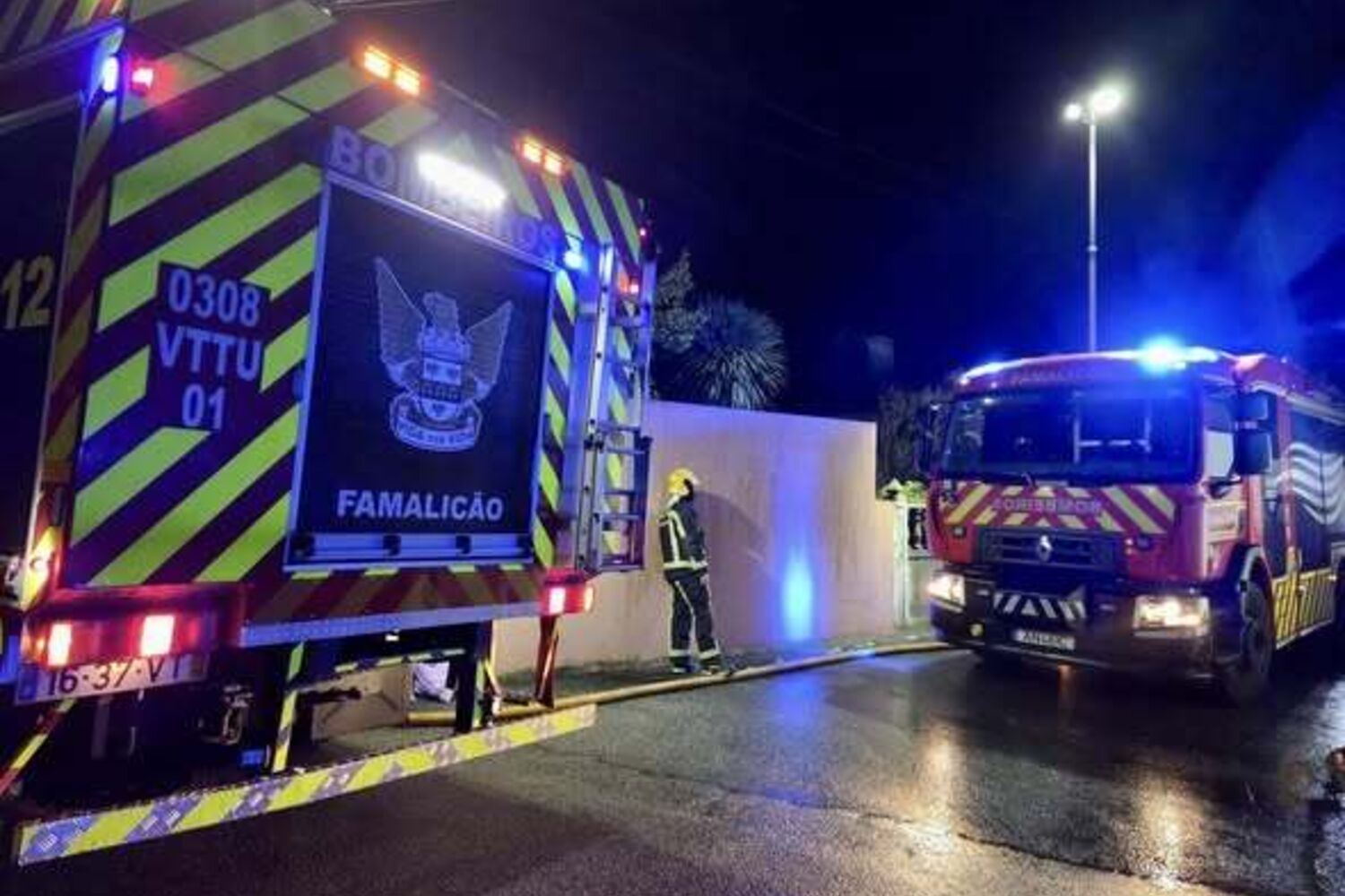 O fogo, cujo alerta foi dado pelas 22h25, foi combatido por elementos dos Bombeiros de Famalicão, com apoio dos Bombeiros da Trofa. Na sequência do incêndio, refere a publicação dos bombeiros, "há a registar danos na habitação e ferimentos leves no nosso bombeiro".
