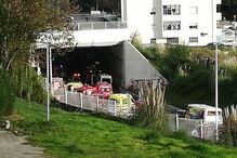 Dezenas de viaturas estão estacionadas junto ao Rio Tejo, nas imediações da Praça do Comércio.