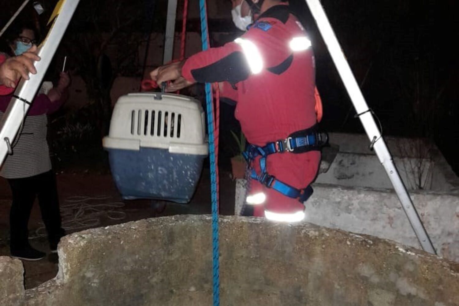 A equipa de resgate dos bombeiros de Sines desceu ao fundo do poço e conseguiu resgatar o animal, que não sofreu ferimentos visíveis.