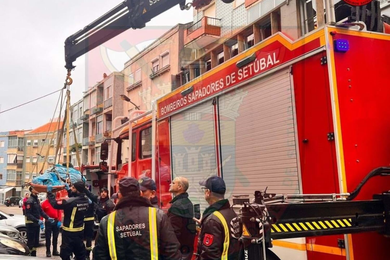 Uma equipa de bombeiros foi obrigado a retirar as janelas de uma marquise da casa onde o homem reside, retirando-o com o auxílio de uma grua pertencente aos sapadores de Setúbal.