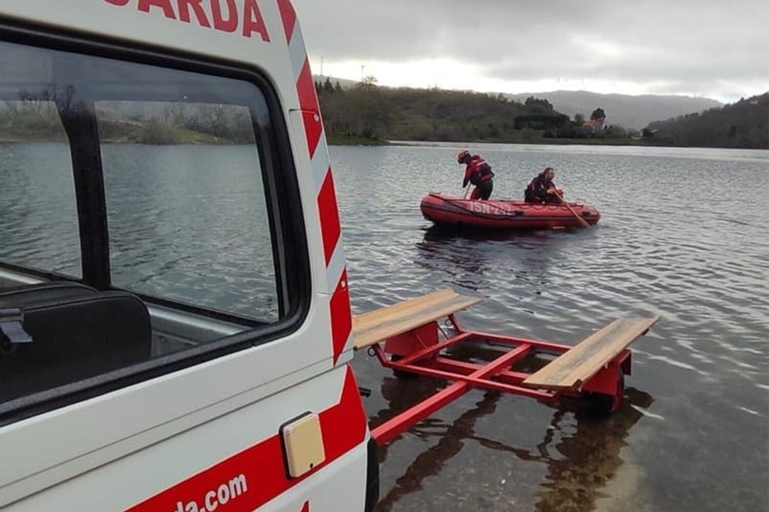 Os Bombeiros Voluntários da Guarda resgataram, esta quinta-feira, um cão que se encontrava à deriva, sobre uma palete, na Barragem do Caldeirão.