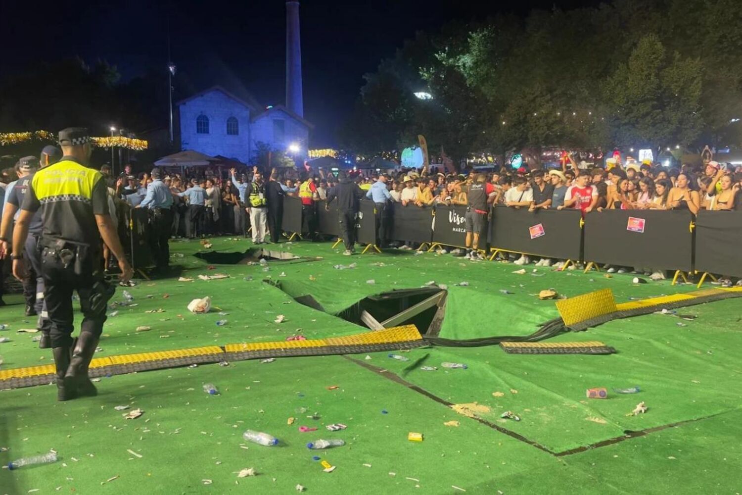 O colapso da estrutura aconteceu na noite de sexta-feira, quando atuavam os rappers portugueses Lon3r Johny e ProfJam. O concerto foi suspenso durante mais de uma hora até ser colocada uma barreira de proteção e polícias no local.