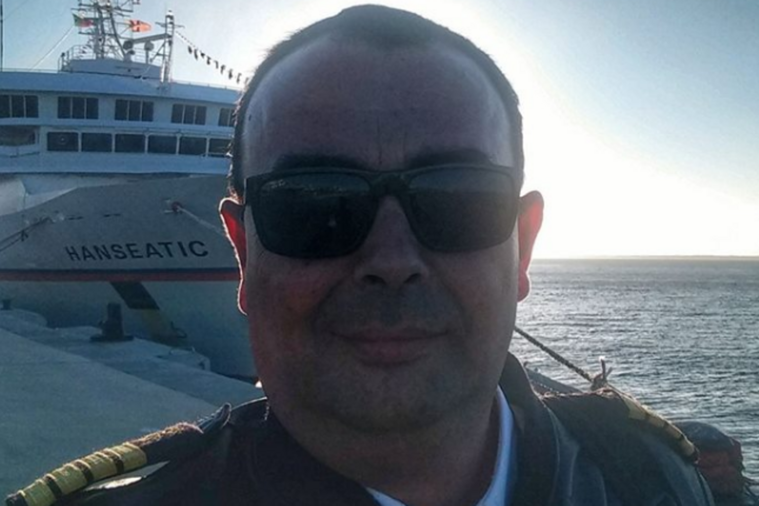 Profissional caiu à água quando desembarcava de um navio para o barco que o ira levar a terra.
