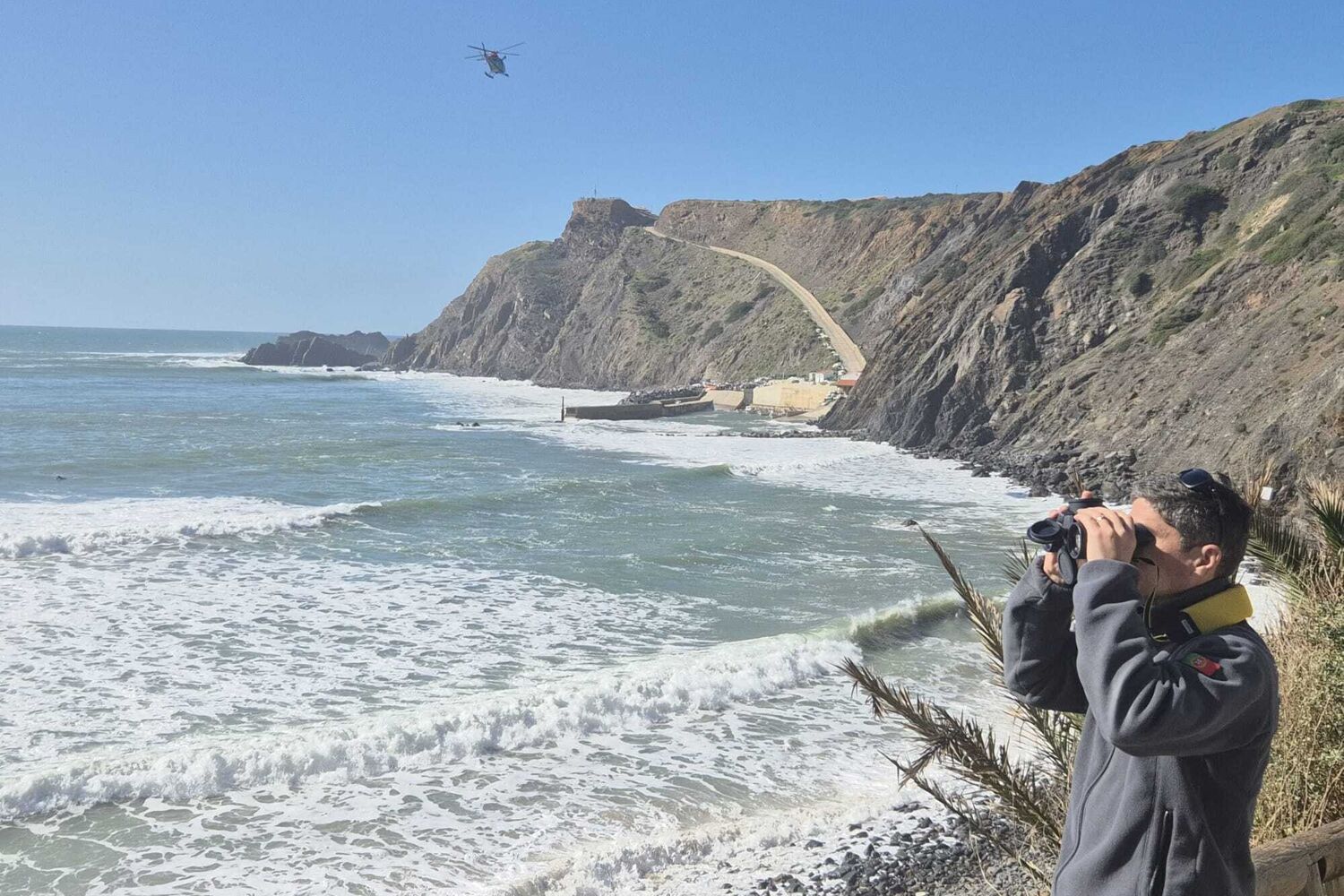 A ocorrência mobilizou elementos do Comando Local da Polícia Marítima de Lagos, tripulantes da Estação Salva-vidas de Sagres, bem como os Bombeiros Voluntários de Aljezur, apoiados por um 'drone' e uma aeronave da Força Aérea Portuguesa.