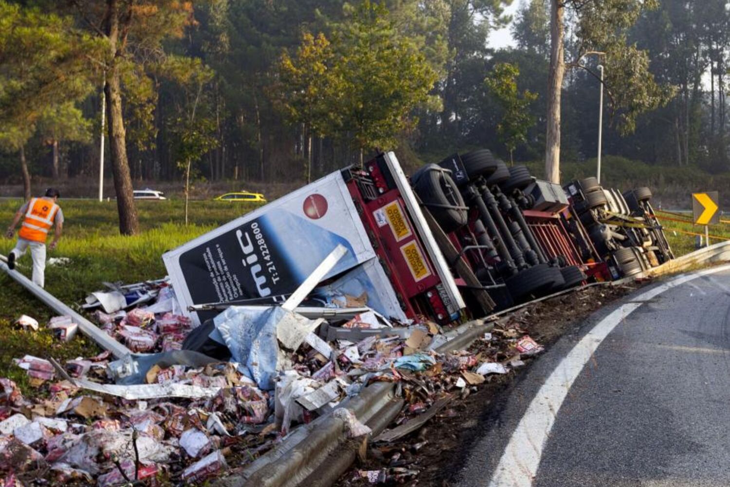 O camião transportava bebidas – maioritariamente refrigerantes e cervejas – e ficou mesmo tombado na curva de acesso às portagens de Albergaria-a--Velha. O trânsito no nó da A1 foi imediatamente cortado e apenas viria a ser normalizado durante a tarde de ontem, depois de realizados todos os trabalhos de remoção do pesado. Os Bombeiros de Albergaria e de Oli-veira do Bairro – num total de 15 elementos – acorreram ao local, mas já nada foi possível fazer para socorrer o homem de 44 anos.