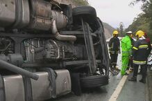 Pesado ficou tombado na via e obrigou ao corte de trânsito.