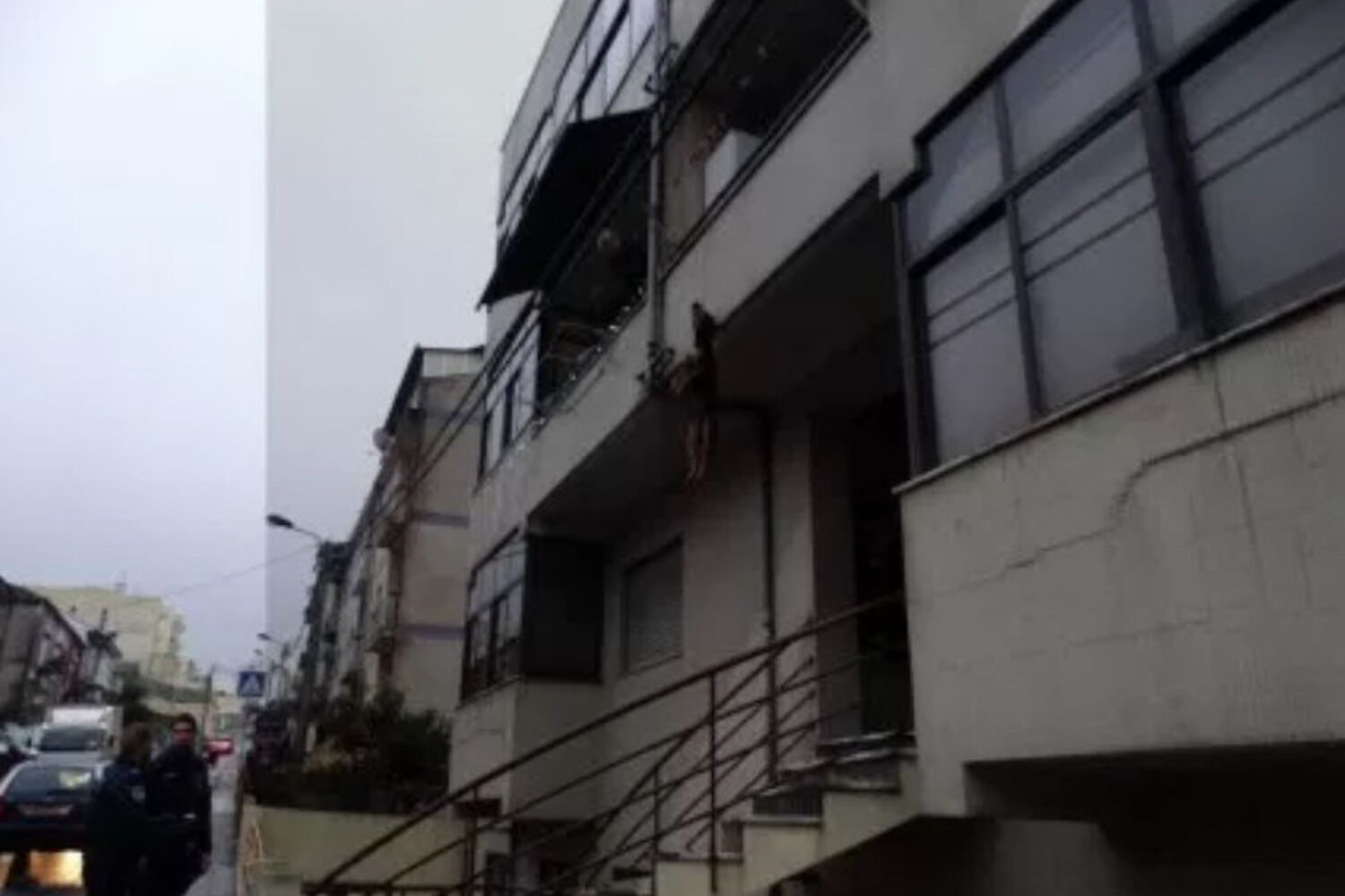 Animal ficou pendurado pela trela em prédio em Braga.