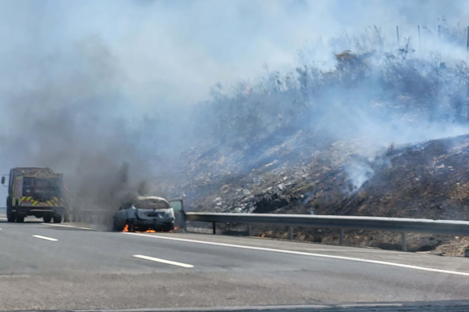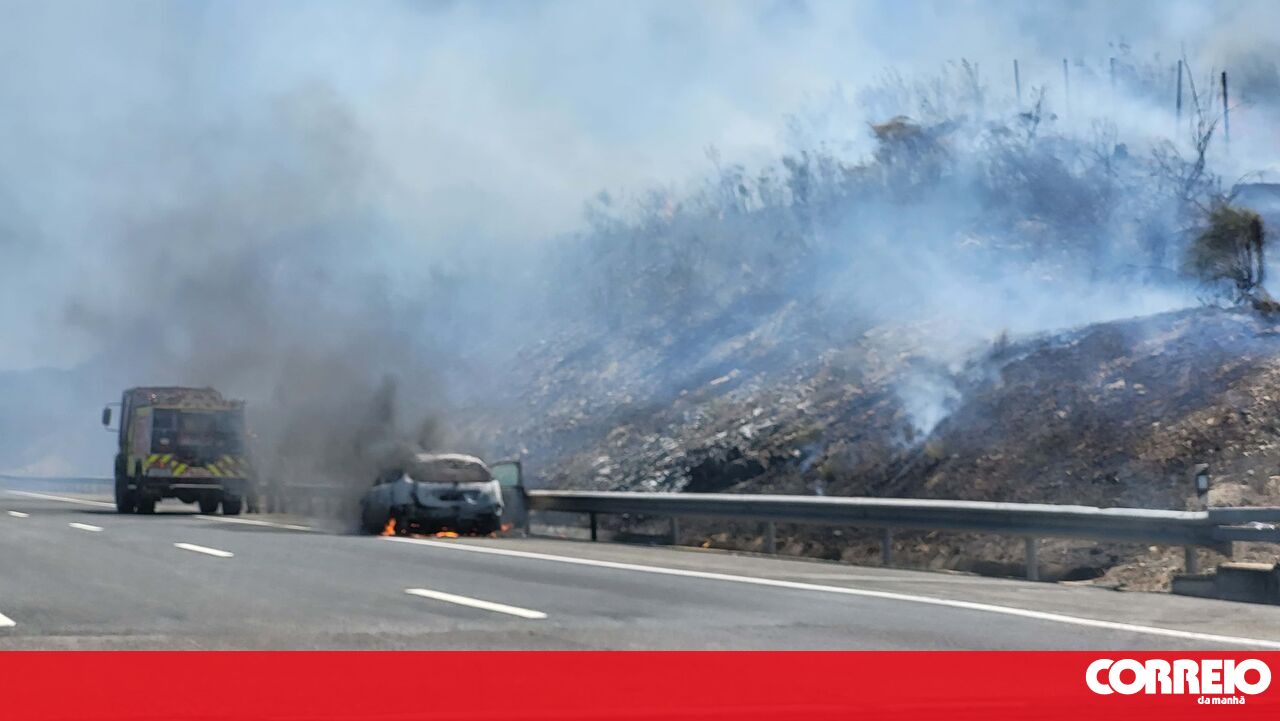 Um carro ardeu, na manhã desta quarta-feira, no sentido Sul-Norte da A2, ao quilómetro 205, perto da Serra do Caldeirão, em Beja.