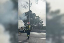 Um carro foi consumido pelas chamas, esta sexta-feira, no sentido norte-sul, na A2, em Ourique.