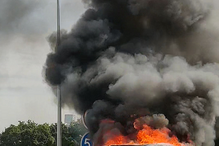 Carro consumido pelas chamas na VCI no Porto
