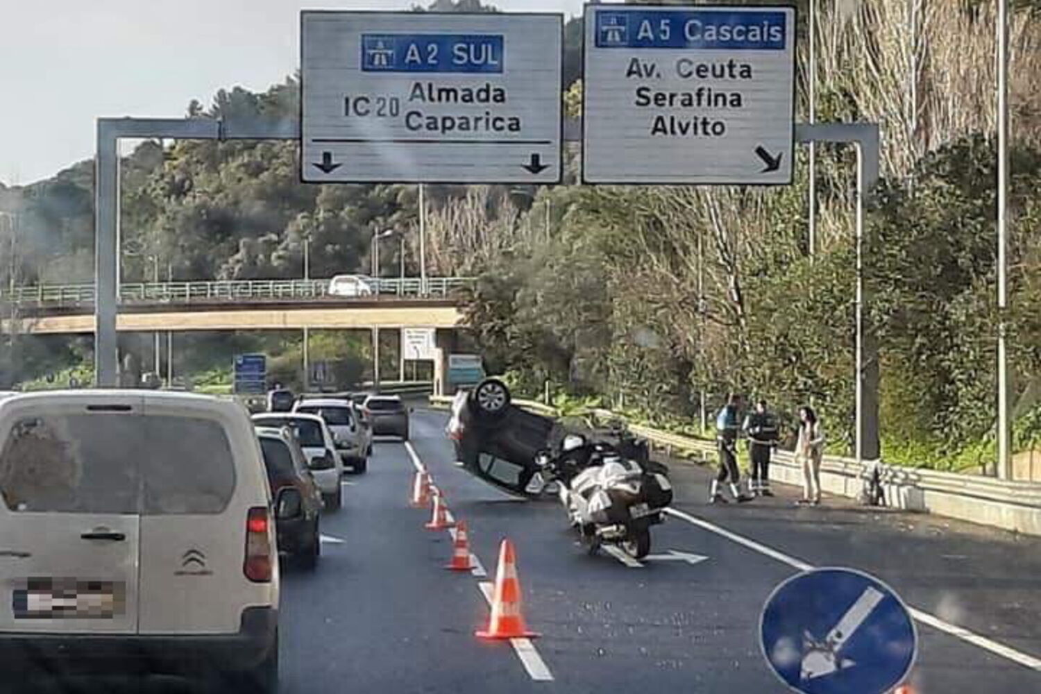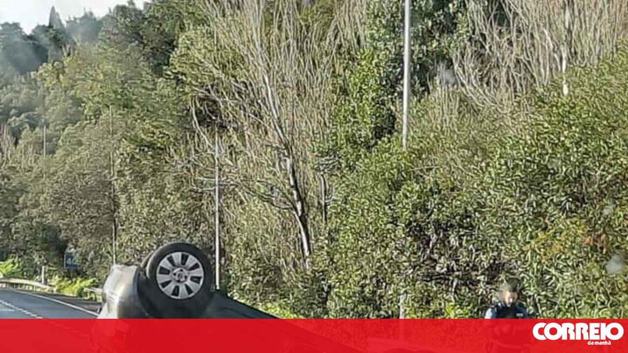Um carro despistou-se e capotou na manhã deste sábado no acesso ao tabuleiro da Ponte 25 de Abril, no sentido Lisboa-Almada.
