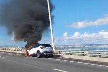 O fogo terá começado na zona do motor e rapidamente se propagou ao interior do habitáculo do carro.