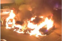 Chamas consomem carros em camião reboque na A1, em Ovar