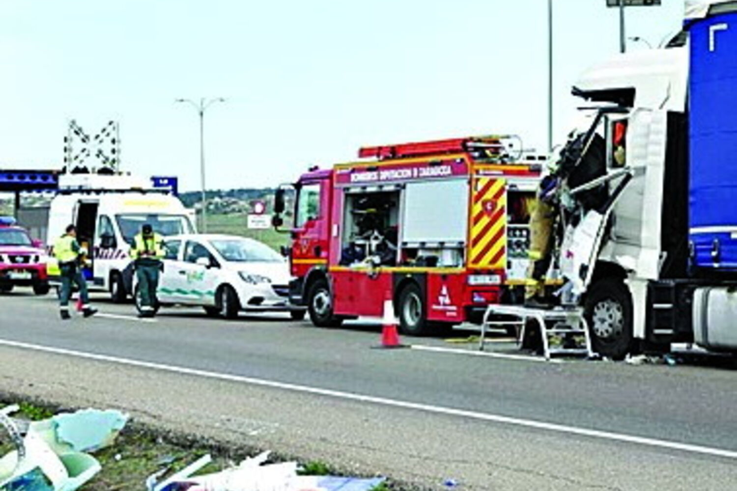 O corpo acabou por ser retirado horas depois e foi levado para a morgue de Saragoça. O condutor do camião frigorífico também ficou preso na cabine, mas escapou com vida.