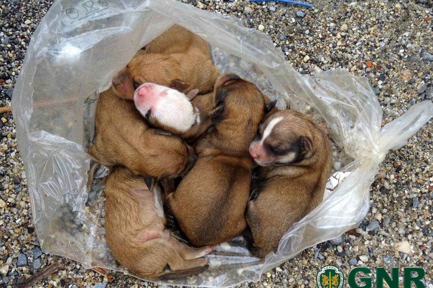 Cinco cães recém-nascidos foram esta quarta-feira recolhidos pela GNR de Castelo Branco de um contentor do lixo, na localidade de Teixoso, Covilhão.