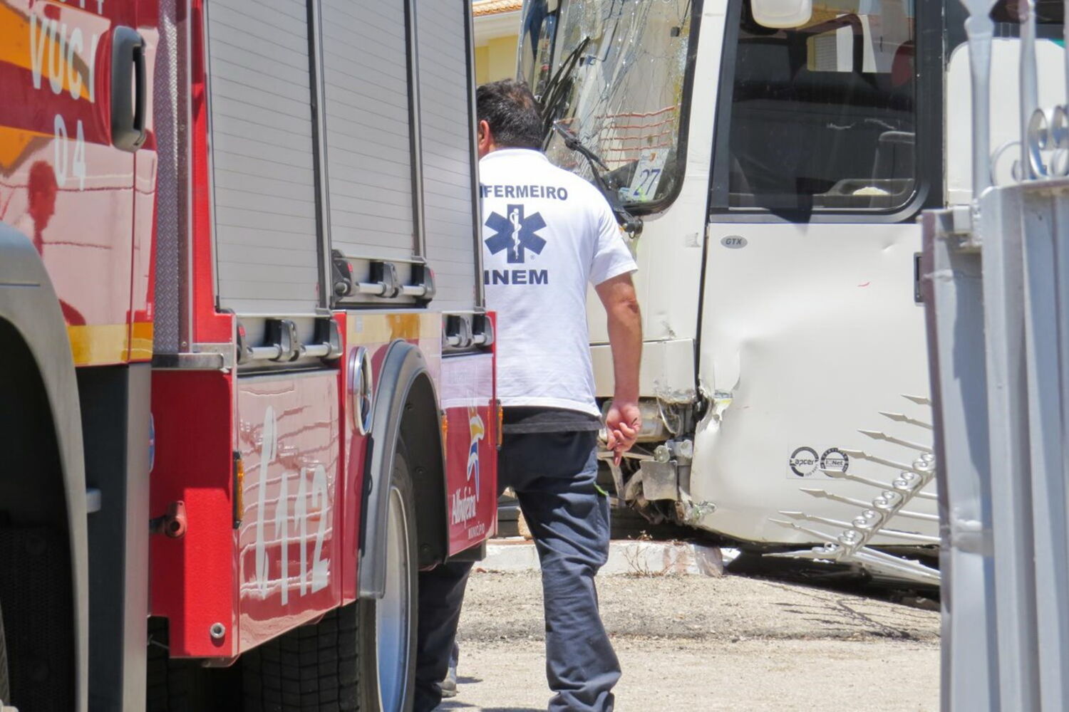 Ficaram feridos o motorista, de 57 anos, e os dois únicos passageiros do autocarro (ambos ingleses, de 44 e 46), bem como uma portuguesa, de 64, um homem, de 57 e igualmente português, e um britânico, de 18, que seguiam todos no carro.