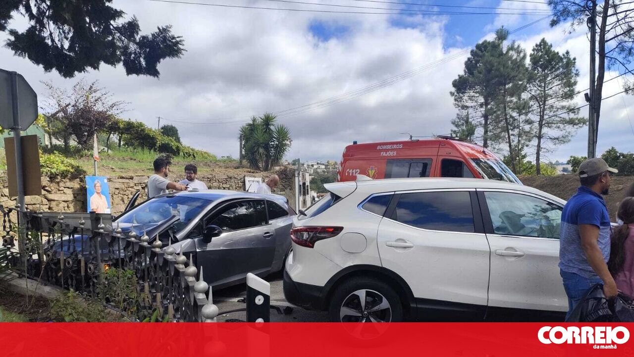 Uma menina, de 7 anos, duas mulheres, de 33 e 67 anos, e um homem de 24 anos, sofreram ferimentos ligeiros, este sábado, na sequência de uma colisão entre dois carros e uma moto, em Oliveira de Azeméis.