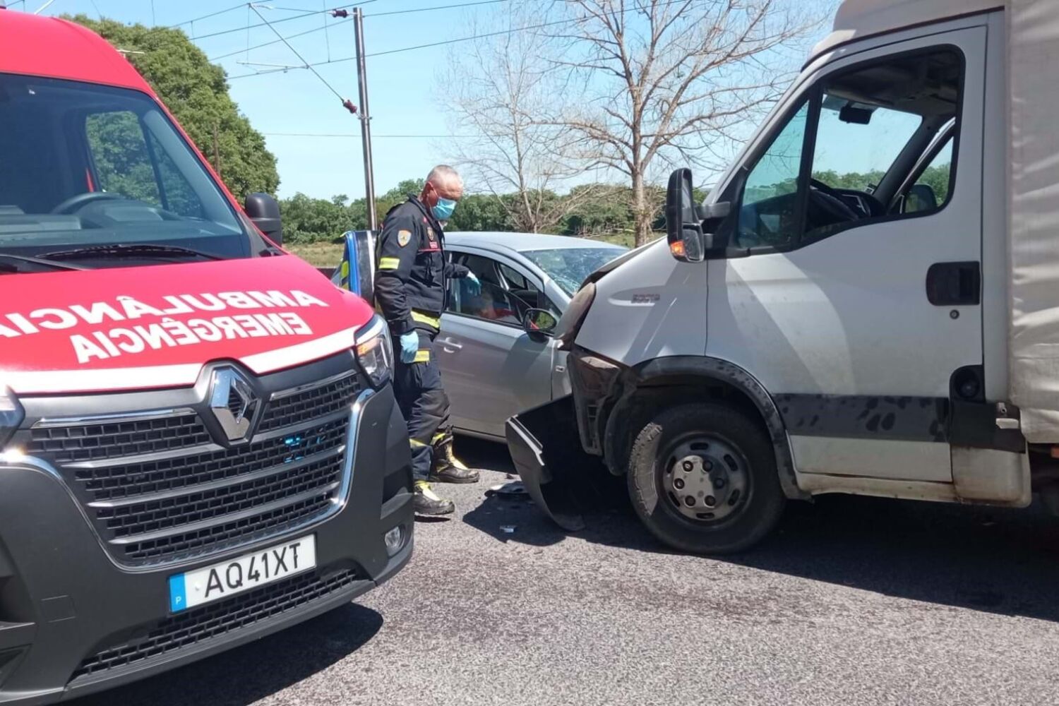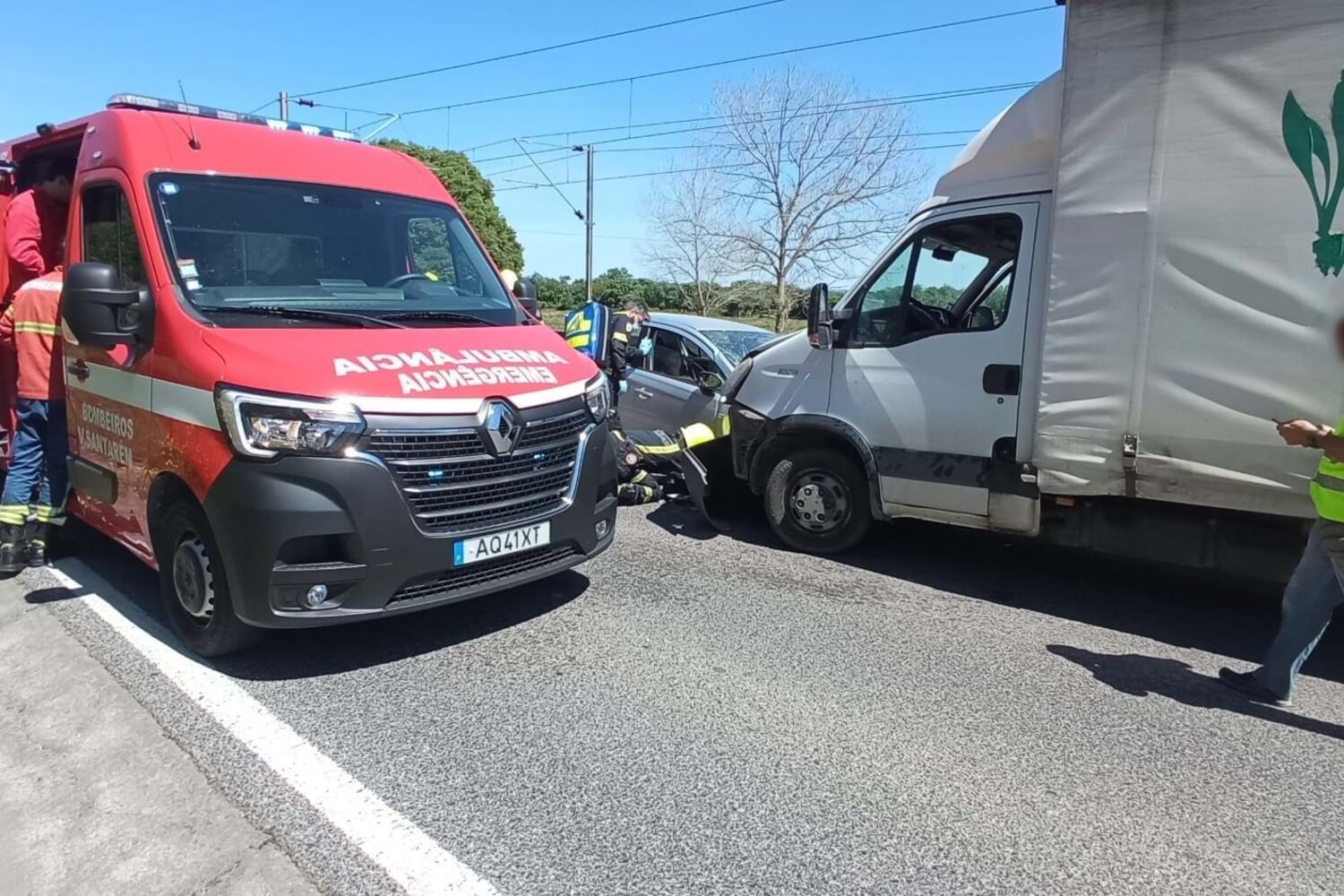 Para o local foram mobilizados 14 operacionais dos Bombeiros e da GNR, apoiados por cinco veículos. Durante o socorro aos feridos, o trânsito esteve cortado naquela zona da Estrada Nacional 3.