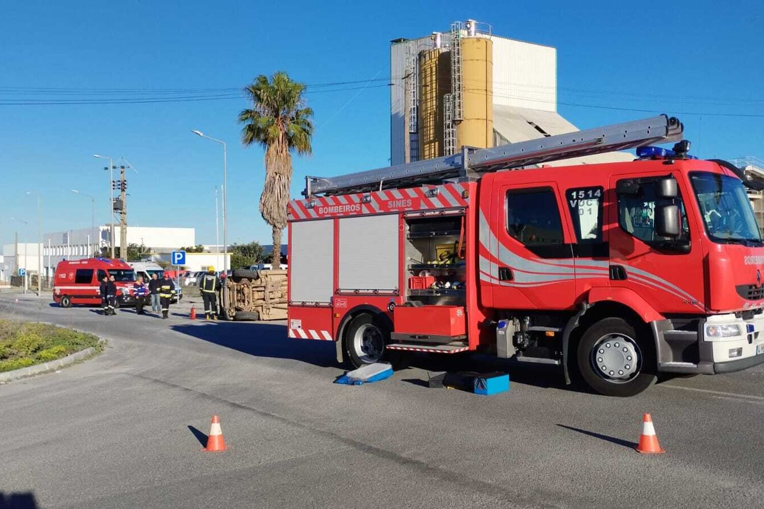 O alerta foi dado às 9h04 e nas operações de socorro estiveram 13 operacionais, apoiados por 6 viaturas, dos Bombeiros de Sines, Serviço Municipal de Proteção Civil e GNR.