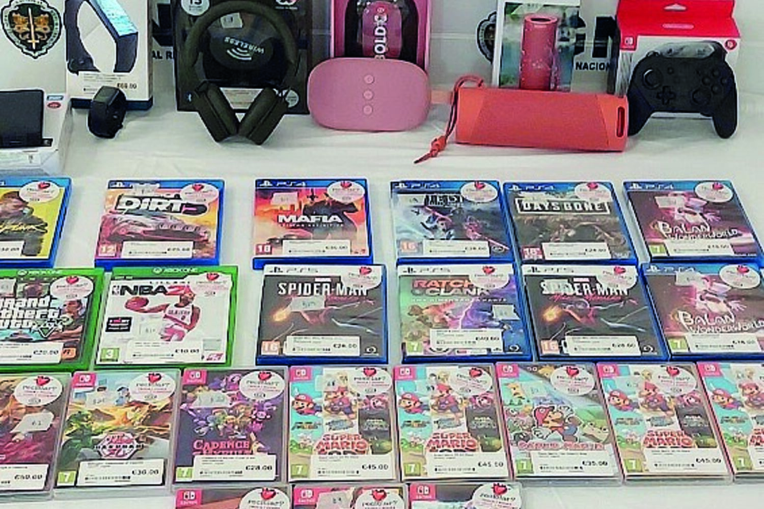 Numa busca ao estabelecimento do suspeito, a GNR apreendeu diversos artigos furtados, entre os quais 23 videojogos, um comando de consola, duas colunas de som de videojogos, um smartwatch e um disco externo.