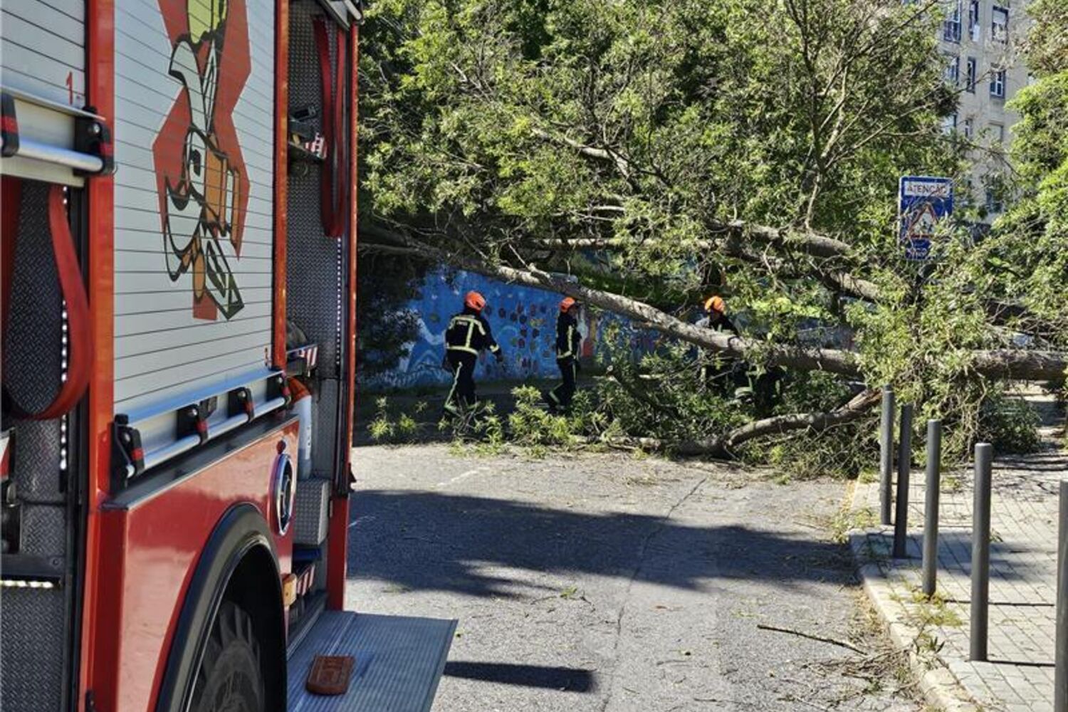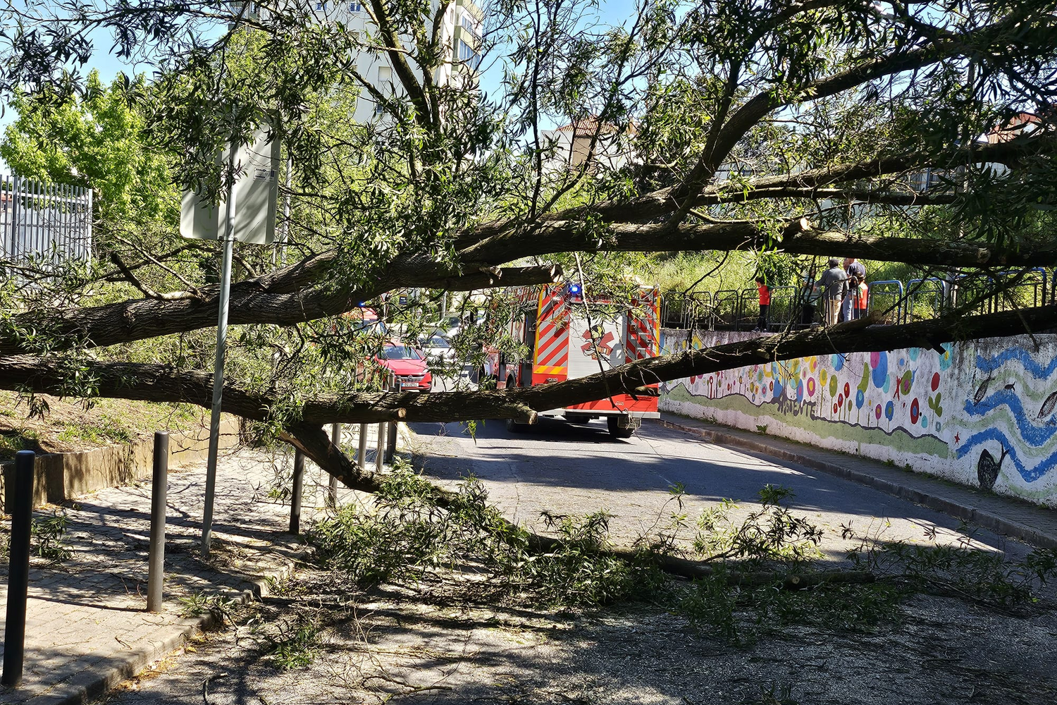 Ao que a CM apurou a ocorrência foi consequência do temporal que deixou os solos instáveis e uma rajada de vento forte provocou a queda da árvore.